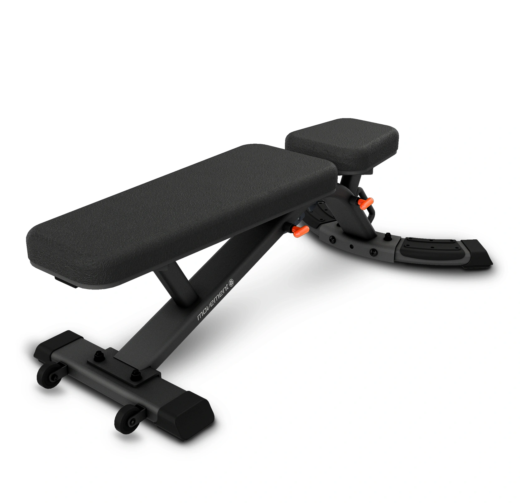 El Banco Ajustable de la línea FW – pesos libres, posee respaldo que estabiliza a los usuarios durante el entrenamiento en una plataforma ajustable, posibilitando variación del ejercicio.