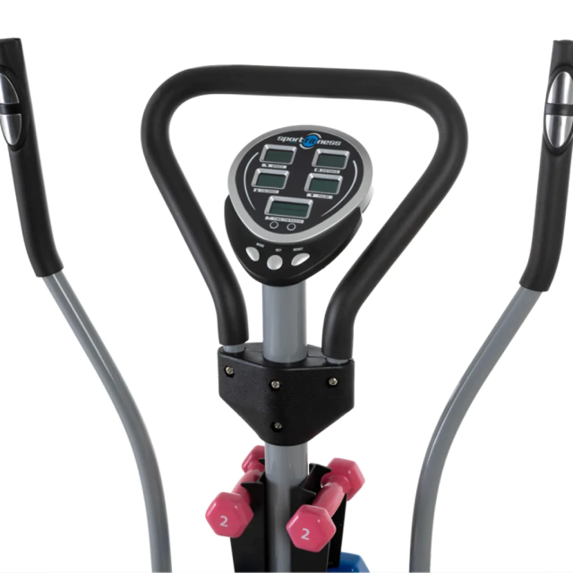 Elípticas Sportfitness ideal para tu entrenamiento cardiovascular. Algunos de los beneficios de las maquinas elípticas es la ausencia de impacto en las articulaciones, fortalecimiento de músculos, quema de calorías, y prevención de enfermedades. La Elíptica Multifuncional Super Combo con Volante en Hierro Sportfitness tiene la ventaja de tener cuatro maquinas en una.