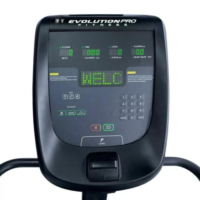 Pantalla funcional del panel: tiempo, altura de subida, calorías, número de pasos, frecuencia cardíaca.