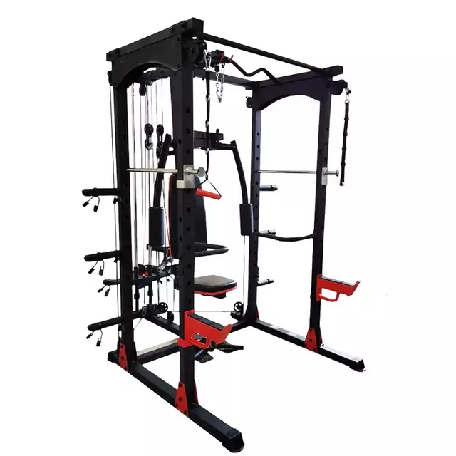 Dimensiones: Largo 192 x Ancho 167 x Alto 207 cmUso: Institucional – trafico semipesadoDescripción•Funciones: Soporte para sentadillas (piernas); soporte para pecho y hombro (usando banco y barra y discos olímpicos no incluidos); poleas altas y bajas;dominadas, vuelos pectorales, entre otras funciones.•Estructura principal fabricada en tubería de 2.0 mm de espesor para usoinstitucional.