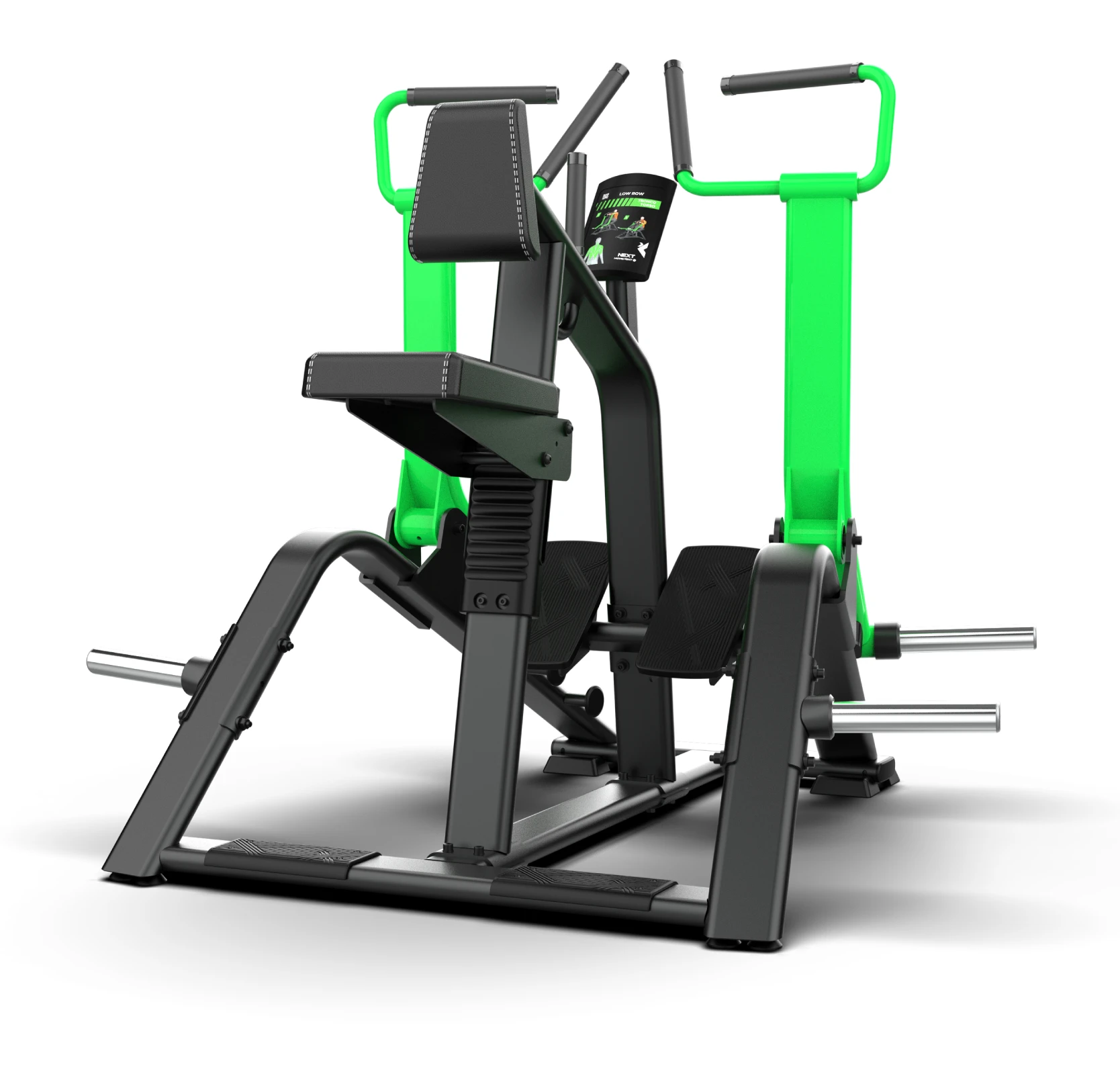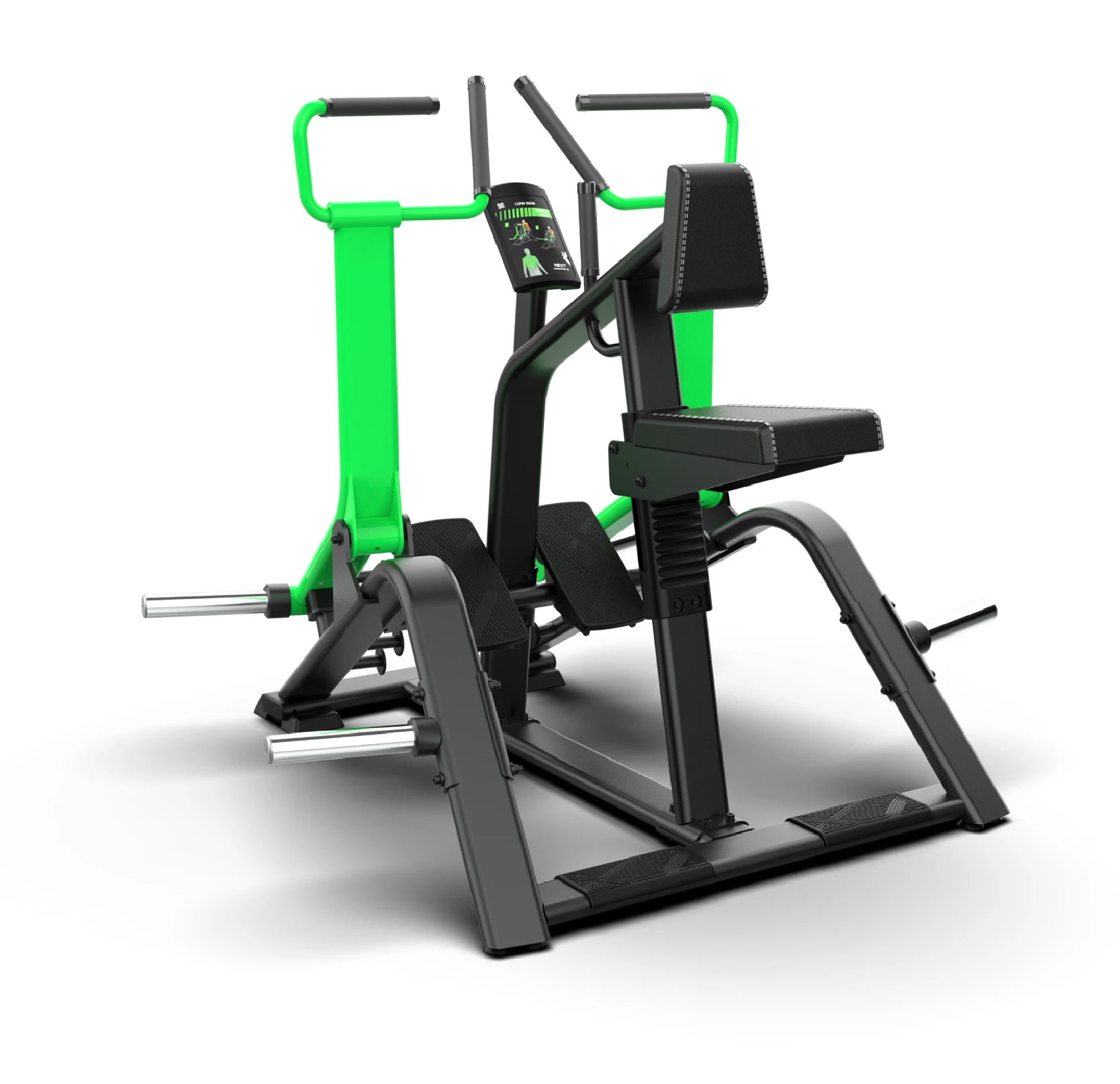 El Low Row es un equipo de musculación profesional articulado, diseñado para fortalecer las principales partes del cuerpo involucradas en el remo, como el dorsal, deltoides posteriores, trapecios, romboides y bíceps braquial. Este equipo es esencial para quienes desean mejorar la postura y alcanzar la popular forma en «V». El remo en máquina ayuda a fortalecer la región dorsal, posicionando los hombros hacia atrás y el pecho hacia adelante, además de fortalecer los bíceps.