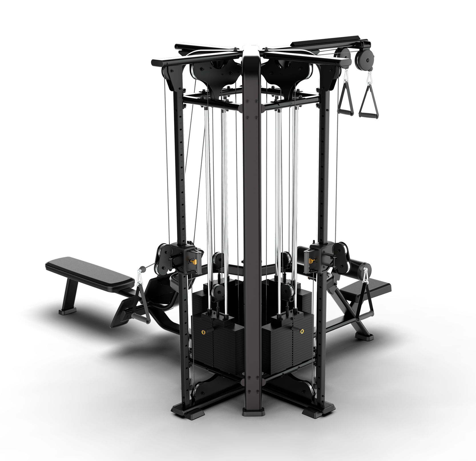 La Multiestación de la línea Next cuenta con poleas dobles que permiten variaciones de agarre y el trabajo unilateral de diferentes grupos musculares. Esta característica permite al usuario mejorar la simetría muscular, promoviendo la armonía y el equilibrio muscular. Este equipo ofrece una variedad de ejercicios para hasta 4 usuarios simultáneos, sin limitaciones.