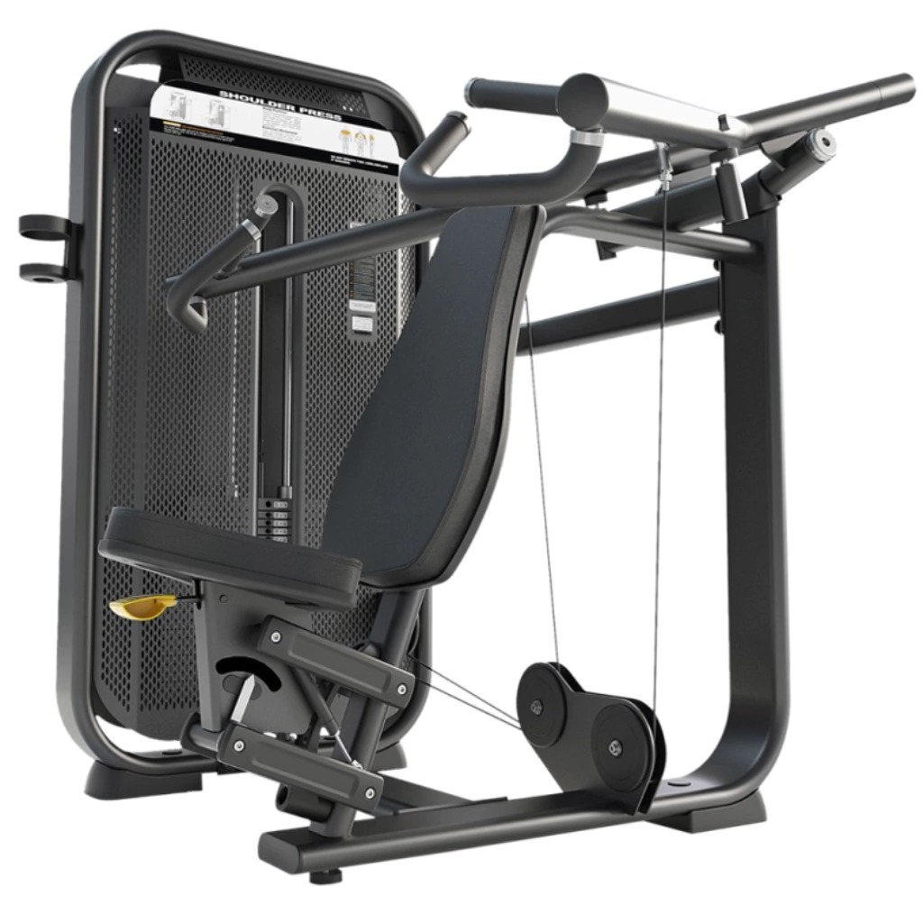 Presión de Hombro ideal para fortalecer y tonificar los músculos de los hombros y los brazos. Las asas de asistencia integradas ayudan al usuario a estabilizar mejor la parte superior del cuerpo.