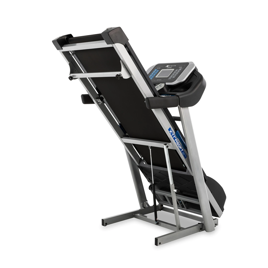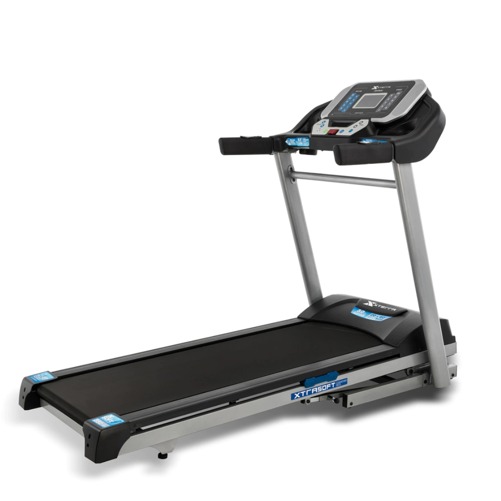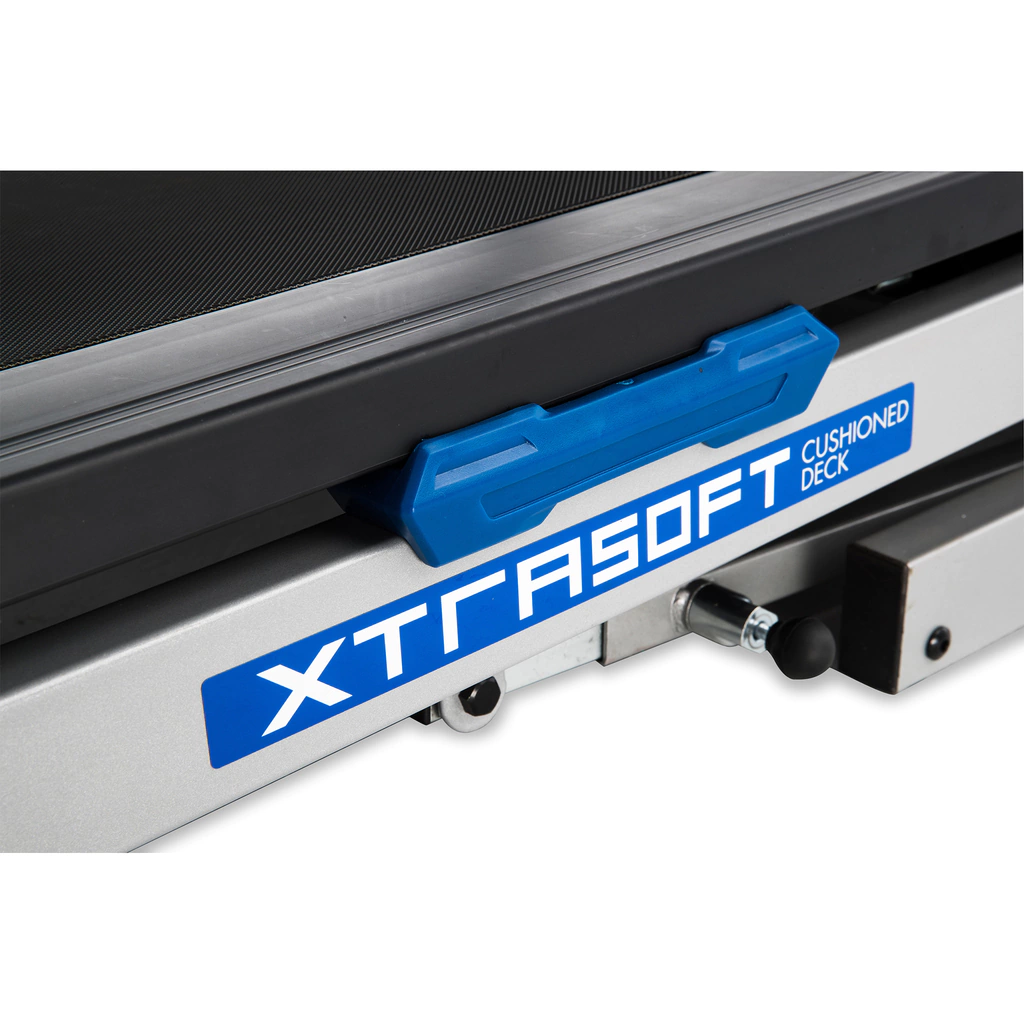 Lectura de frecuencia cardíaca por contacto de manos ó telemetría. Plataforma con amortiguación XTRA SOFT diseñada para proporcionar un entrenamiento suave que reduce el impacto en las articulaciones. Controles de velocidad e inclinación en los manilares. Plegado asistido por amortiguador (facilita almacenamiento y mantenimiento del equipo). Incluye ventilador para el usuario. Medición de la frecuencia cardíaca por telemetría con banda pectoral. Altavoces integrados con entrada de audio MP3. Botones para cambio directo de velocidad e inclinación (1,2,3,4,5,6,7,8,9,10). Rieles laterales en aluminio. 4 ruedas de transporte para mover fácilmente el equipo.